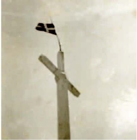 Foto de la cruz de Hernio tomada por el mismo Estanis, donde había colocado una ikurrina, como lo haría en otras cimas.