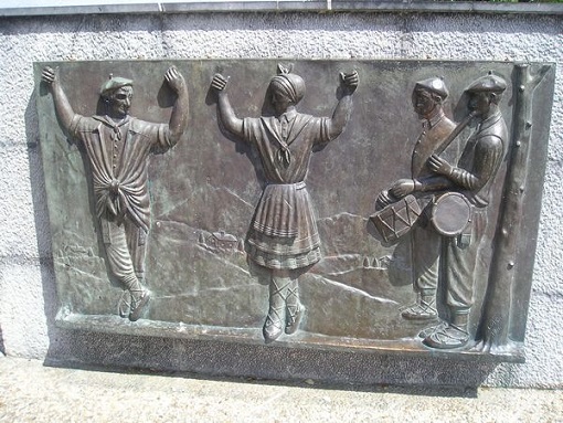 Escultura sobre la euskal dantza de Juanito Lope en el paseo Zumalakarregi con un "bertso" al respecto de "Uxola"