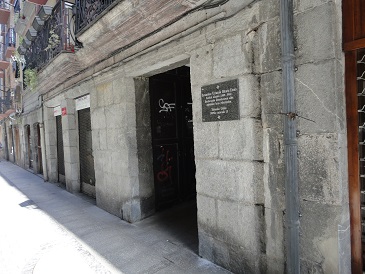 Edificio núm. 31 de la calle Mayor en cuyo primer piso nació y detalle de la placa con motivo del centenario de su nacimiento.